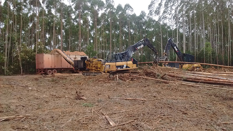 Mecanizamos operações florestais de grande porte ( extração de toco, corte, remoção, picagem e transporte ).
