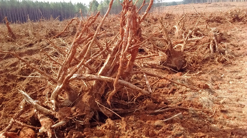 Mecanizamos operações florestais de grande porte ( extração de toco, corte, remoção, picagem e transporte ).